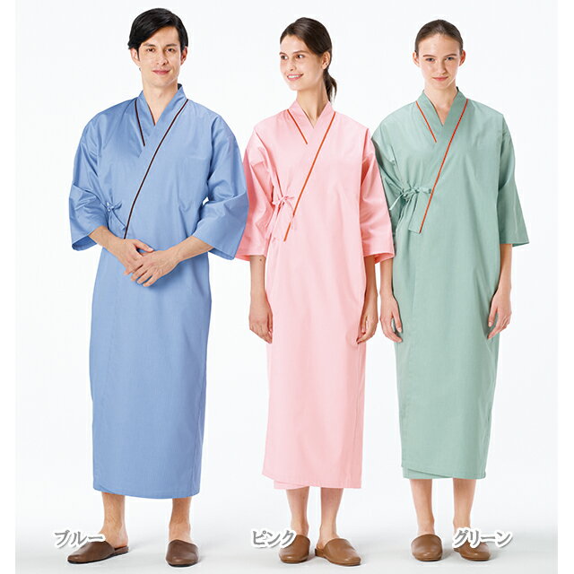 SG1440 ナガイレーベン 患者衣 ゆかた型 男女兼用 七分袖 吸汗 業務用洗濯可 形態安定 NAGAILEBEN 医療用 患者 入院 検診 検査 院内着 ユニセックス パジャマ 寝巻 浴衣型 ブルー ピンク グリーン